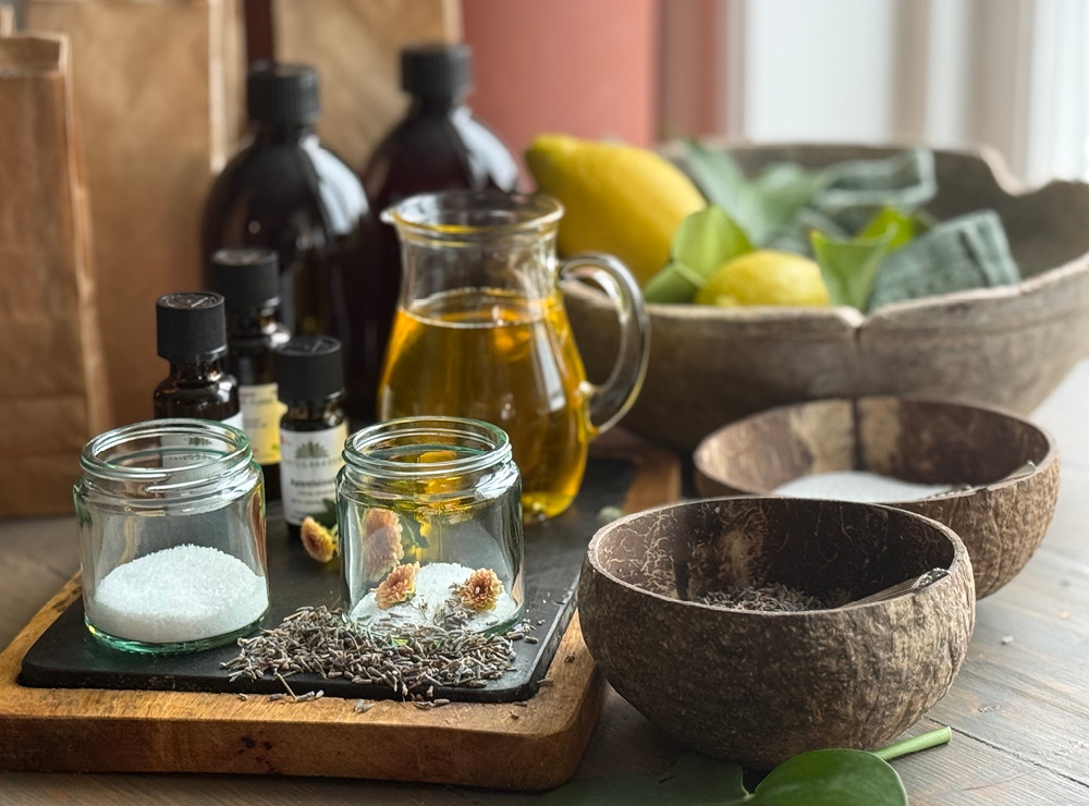 Velg din favorittduft, bland naturlige ingredienser og ta med hjem en personlig skrubb du har laget selv