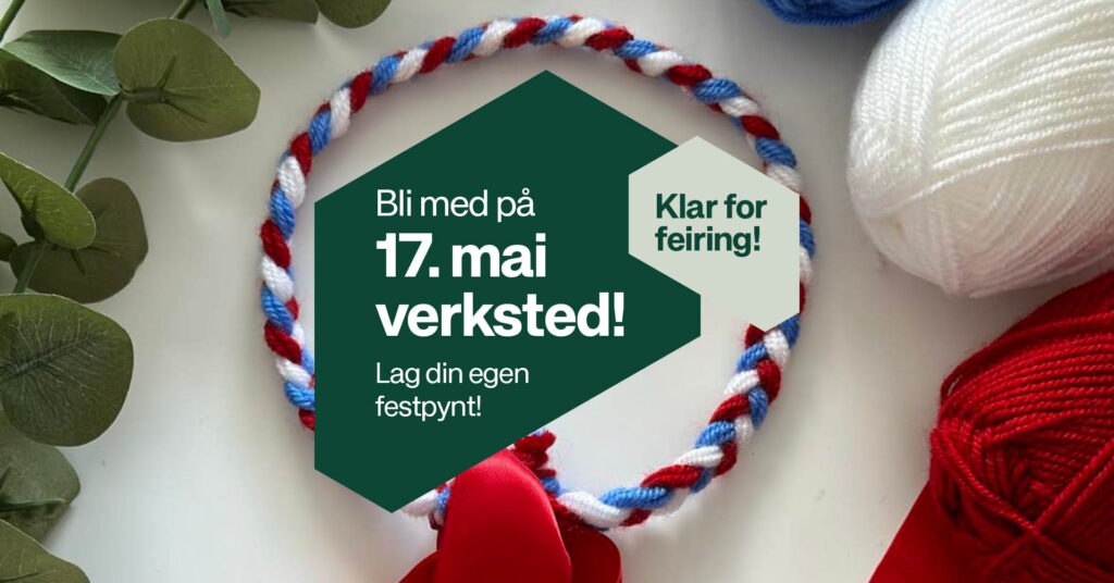 Gjør deg klar for nasjonaldagen! Lørdag 16. mai er barn og unge velkommen til vårt 17. maiverksted, hvor de kan lage: